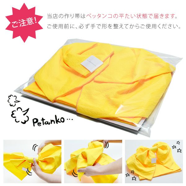 ・加工済み作り帯の在庫が無い帯につきましては、平帯(※ご自身で結んでいただくタイプの帯)からの加工になります。