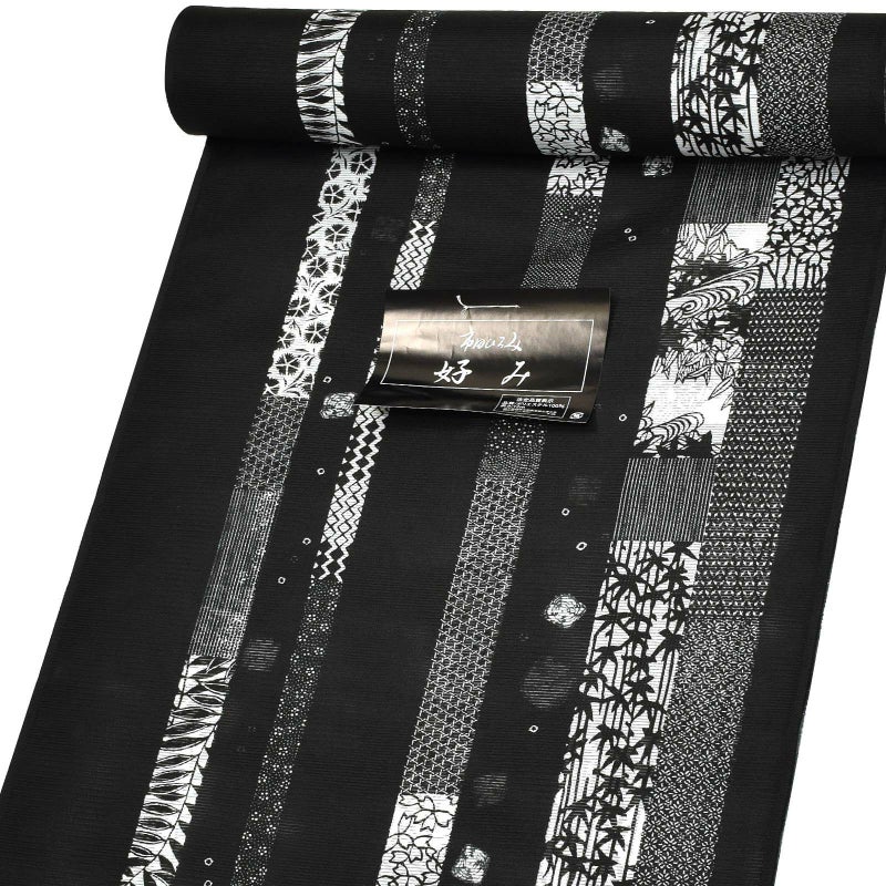 6. セミオーダー 洗える 夏着物 絽 反物 市田ひろみ「黒地 寄せ柄」お仕立て代込み 夏着物 洗える着物 洗える夏着物【メール便不可】