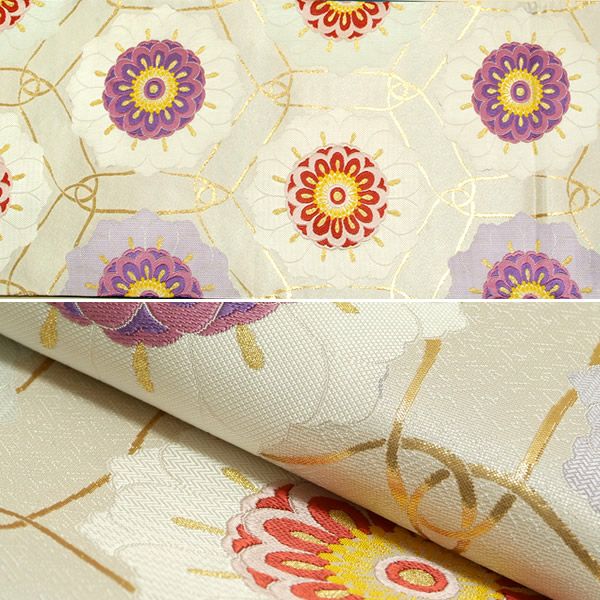 西陣織袋帯 真珠箔「オフホワイト×ゴールド 亀甲に桜」お仕立て代、帯芯代込み [ 袋帯 ] [ 振袖帯 ]振袖帯 お仕立て代込 帯芯代込【メール便不可】<T>