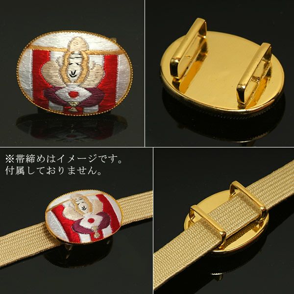 【Prices down4】十二支刺繍帯留め「紅白、扇子を持った猿(申、さる)」干支帯留【メール便対不可】 干支柄 十二支柄 和装小物 お正月着物にss2509wkm25