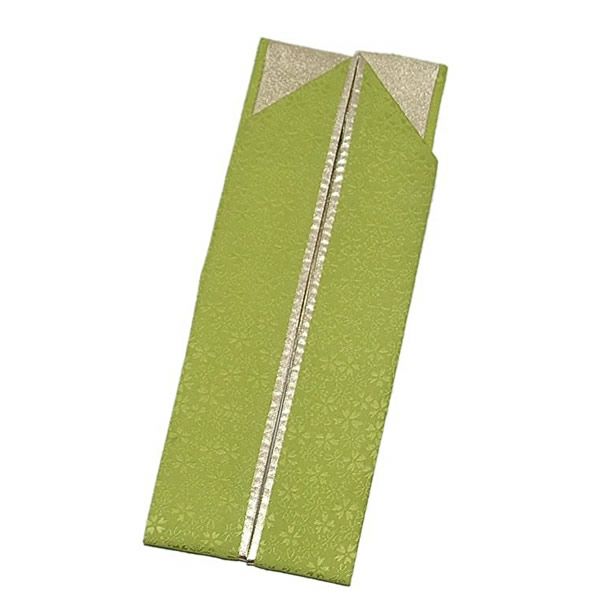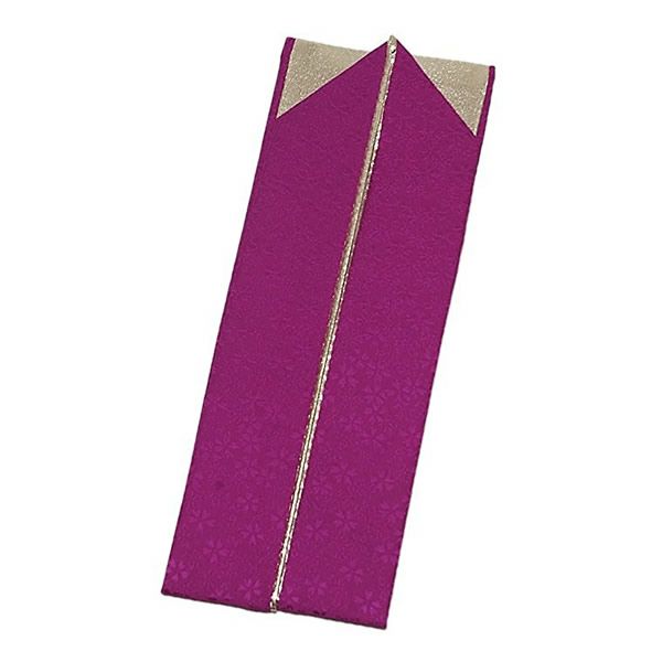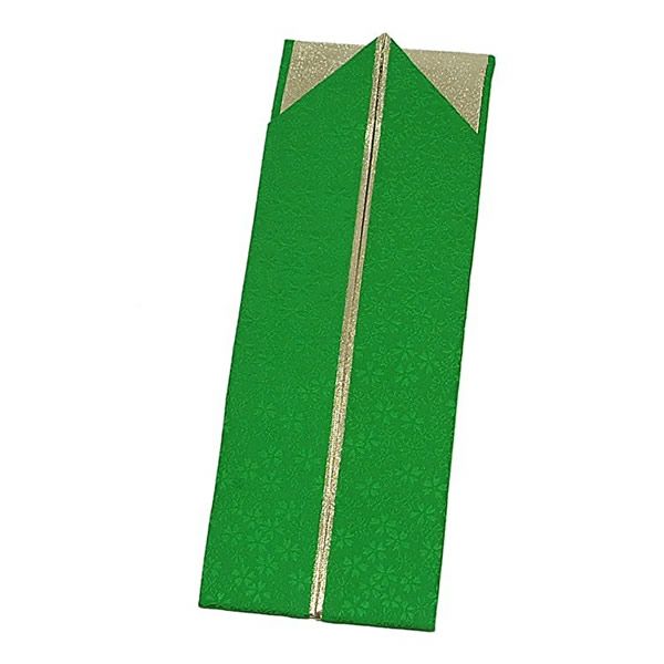 振袖、訪問着などの衿に付属のコームピンで留めていただくだけで、簡単に使用できます。小さな桜の地模様の正絹生地、わずかに見える少し落ち着いた色合いのゴールドの上品なラメ感のある生地の2枚が重なっており、シンプルな重ね衿ですが、お着物の衿元がより華やかにしてくれます。