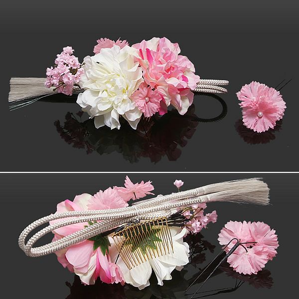 【Prices down5】振袖お花髪飾り「ピンク×白色のお花、ゴールドの組紐飾り」結婚式 振袖髪飾り 前撮り Watuu(和つう) (No.238)【メール便不可】ss2512wkk45