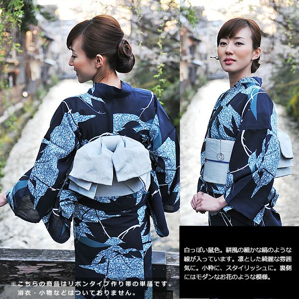 京都きもの町オリジナル 浴衣帯 リボンタイプ結び帯単品「白鼠色 絣」京都きもの町オリジナル 小袋帯 ゆかた帯 <浴衣帯3>【メール便不可】