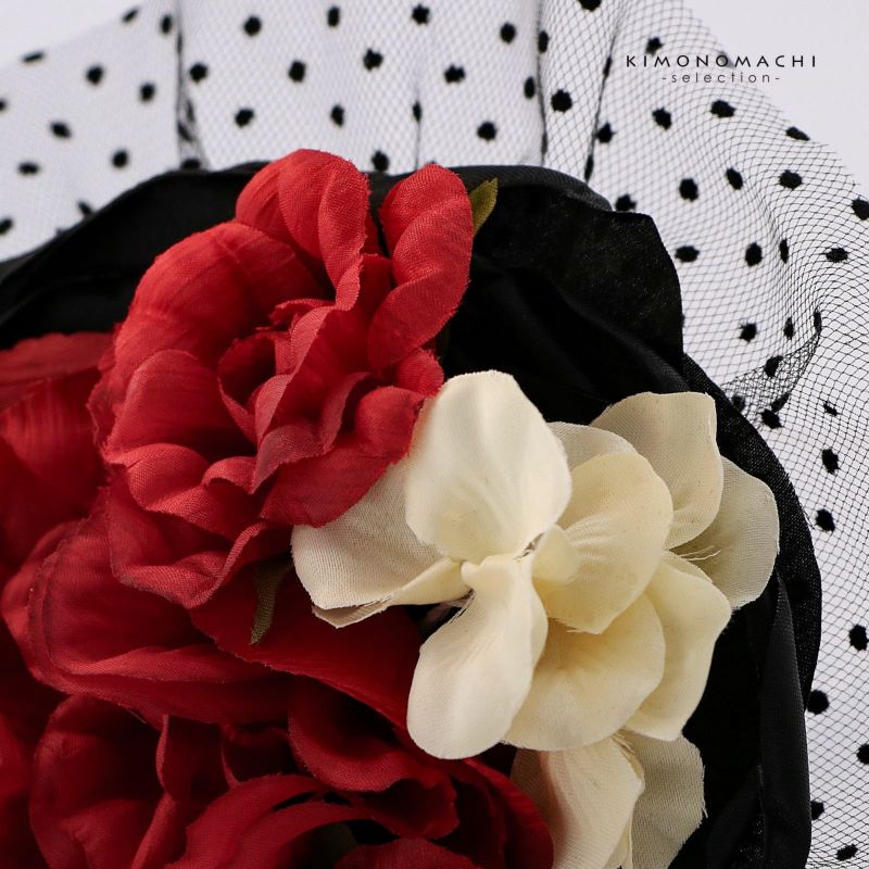 【Prices down5】髪飾り 成人式 卒業式 「赤×黒色 花とレース」 振袖 お花髪飾り 前撮り ヘアアクセサリー【メール便不可】ss2512wkk25