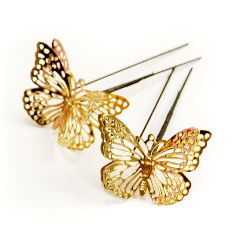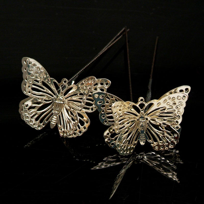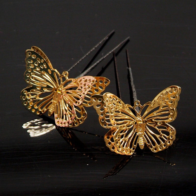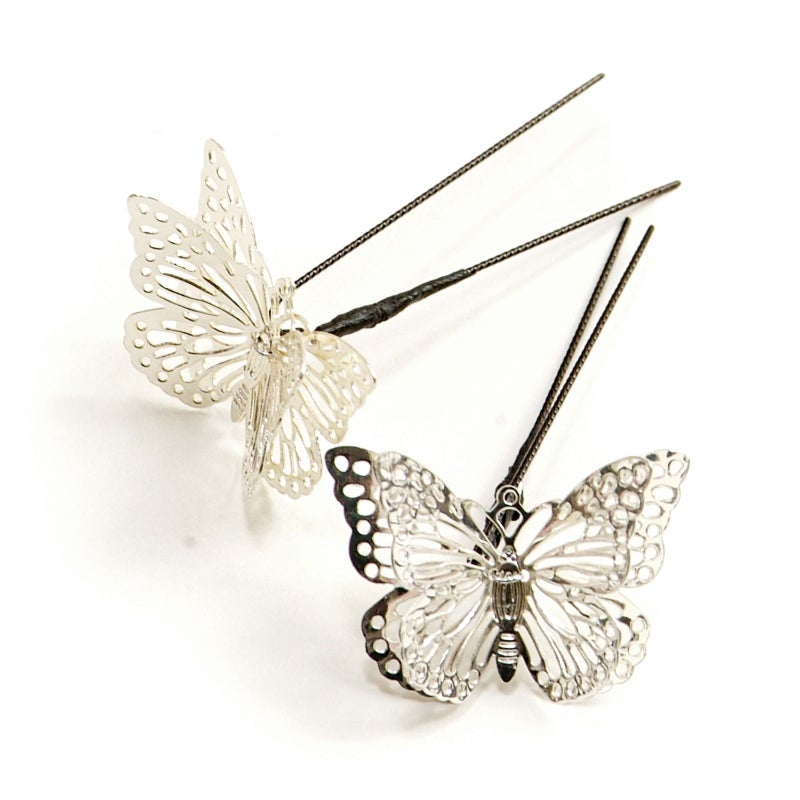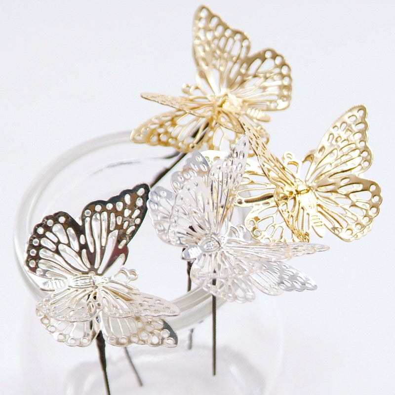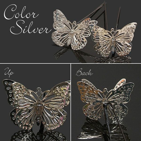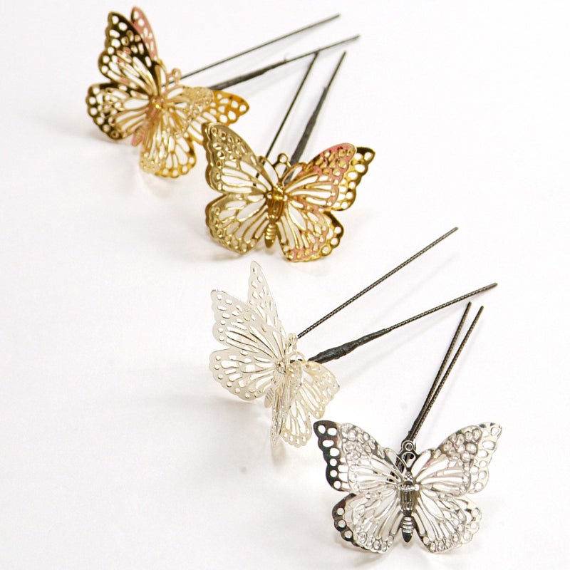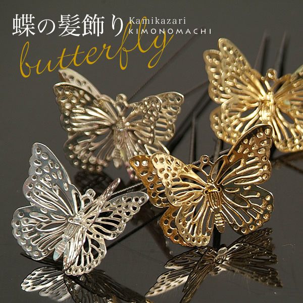 (卒業式応援75%SALE 3/5迄)Uピン髪飾り全2色「蝶々 ゴールド、シルバー」 振袖髪飾り ヘアアレンジ 【メール便不可】<H>