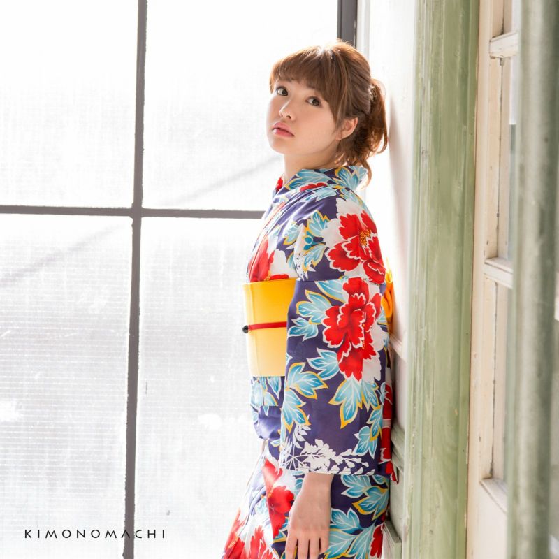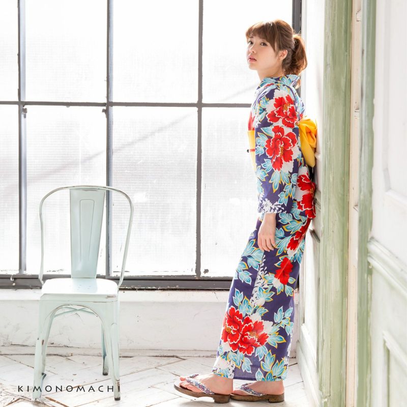 3. 京都きもの町オリジナル浴衣単品「紺色牡丹」フリーサイズ 綿浴衣 お仕立て上がり浴衣 レディース 女性用 女性浴衣 ゆかた yukata【メール便不可】ss2512ykl10