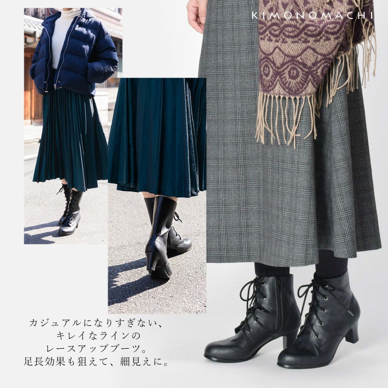 シンプルな編み上げブーツ(レースアップブーツ)です。