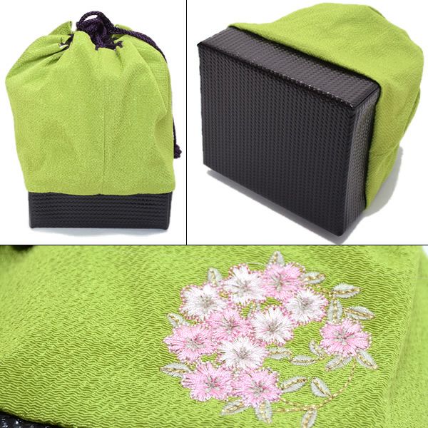 (卒業式応援75%SALE 3/5迄)【Prices down3】刺繍巾着「抹茶色 桜の輪刺繍」刺繍 ちりめん巾着 袴巾着 【メール便不可】ss2512wkm50