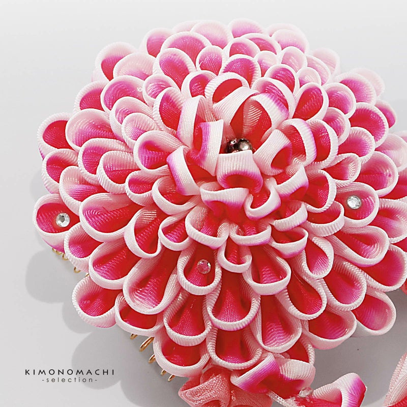 振袖に華やかな髪飾り (卒業式応援75%SALE 3/5迄)【Prices down5】髪飾り 成人式 卒業式 「赤ピンクぼかし つまみのお花」 振袖 お花髪飾り 前撮り 結婚式 レトロ モダン ヘアアクセサリー 日本製(15018)【メール便不可】ss2512wkk35