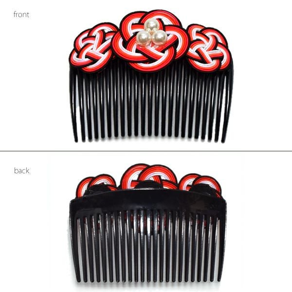水引きコーム髪飾り「赤×白色」水引き 和装髪飾り 普段使い 振袖 ヘアアクセサリー (KK-7)