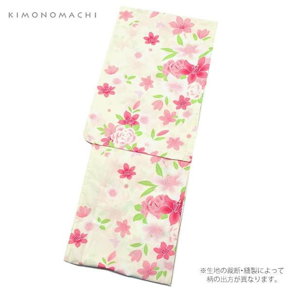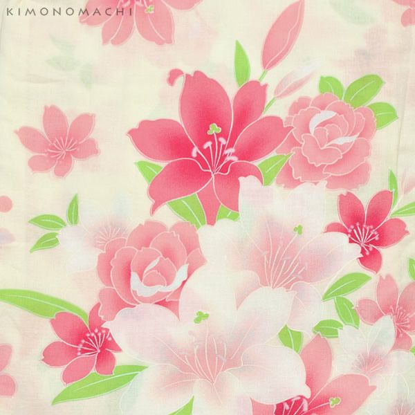【カラー】柔らかな生成り地に、百合、薔薇などの花。ところどころに小さな蝶模様。