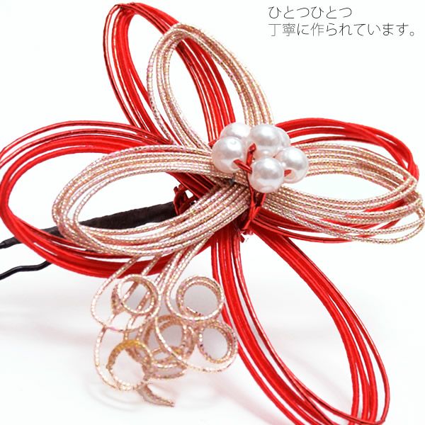 (卒業式応援10%OFFCOUPON1/22迄)水引き髪飾り「赤×ピンクゴールド」ポイント髪飾り 振袖、袴に ヘアアクセサリー ヘアアレンジ Uピン髪飾り (UP-8)【メール便不可】<H>ss2503wkk20