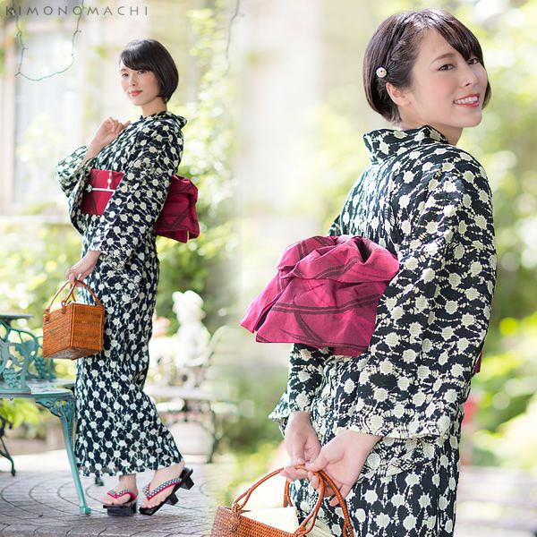 【カラー】黒色、ごくごく薄い鼠色。スタイリッシュで、粋な雰囲気に。シンプルなので、帯合わせも楽しめ、流行にとらわれず、長くご愛用いただける浴衣です。