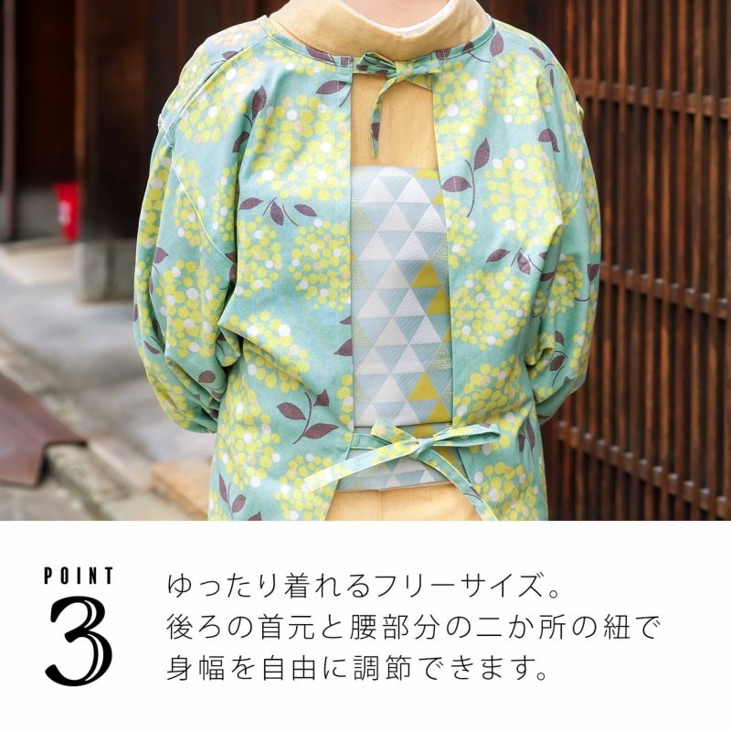 家事や料理など作業時の汚れ防止に、着物だけでなく普段着の洋服にも合わせていただけます。