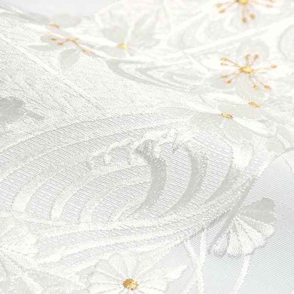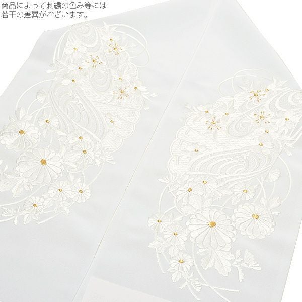 刺繍半衿「白色 流水に檜扇」シルドール 振袖、訪問着、色留袖に テイジン ブライダル 振袖半衿 【メール便対応可】<H>