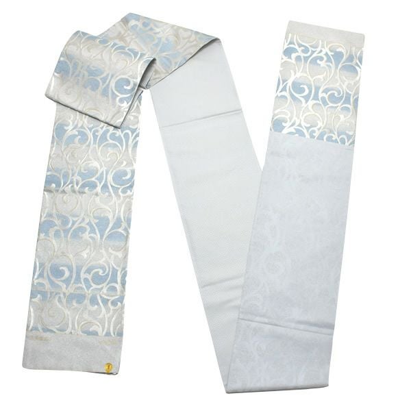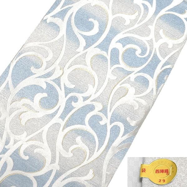 細かに織り込まれた銀糸のすっきりとした色合い、ブルーの段ぼかし。
