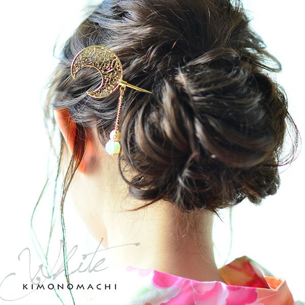 【Prices down2】月 かんざし「ホワイト、ピンク」髪飾り 普段使いに 簪 浴衣アクセサリー 【メール便不可】ss2512wkk40