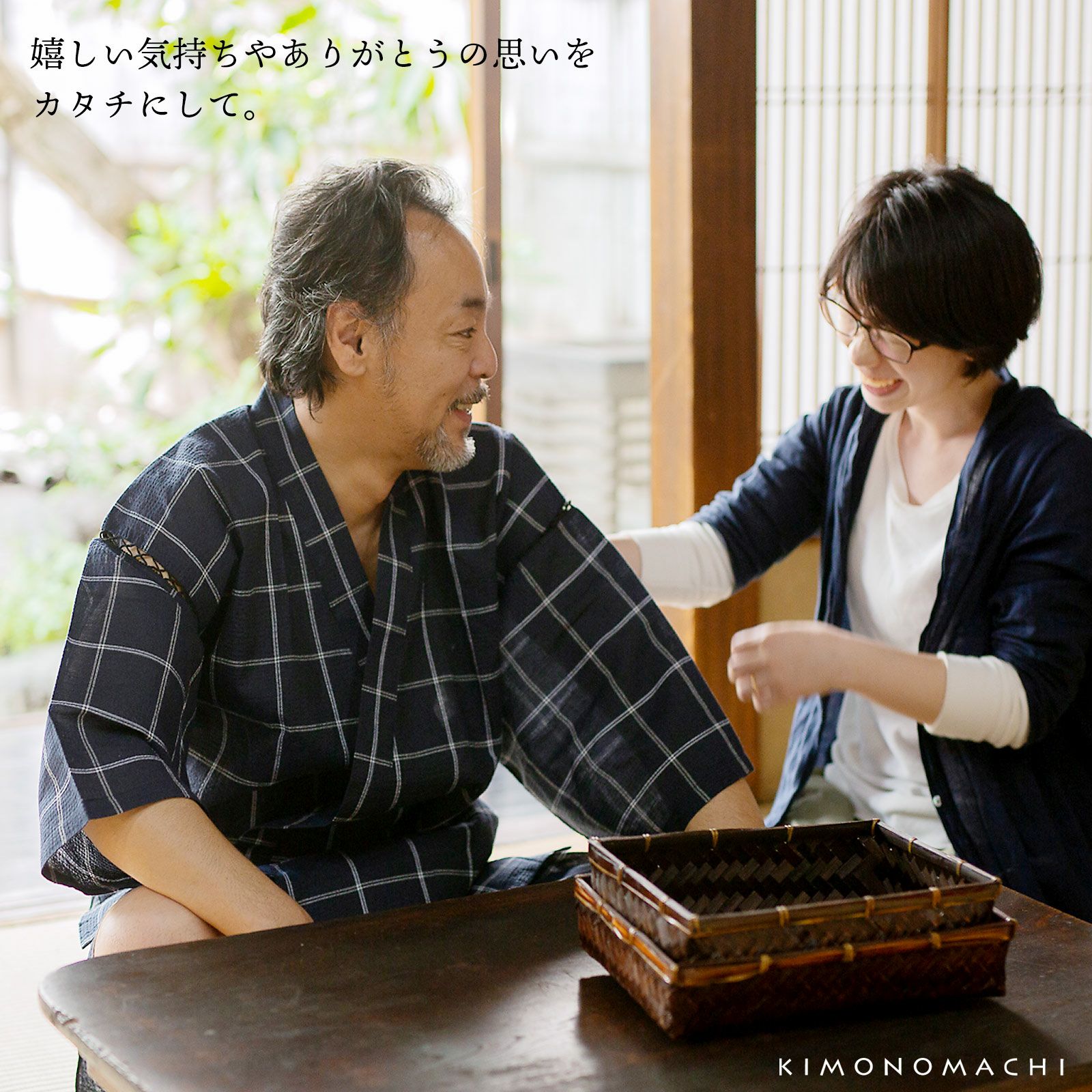 日本らしさのあるくつろぎ着で、リラックスできてかつ粋な雰囲気。