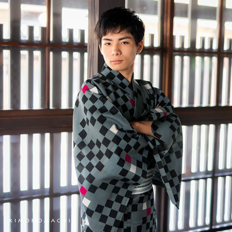 男性浴衣単品です。M、L、LL(2L)、3L、4Lの5サイズからお選びいただけます。