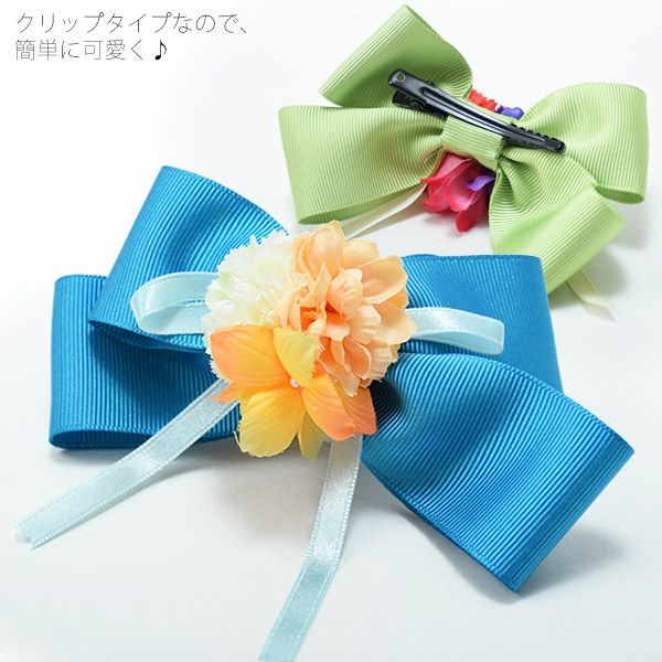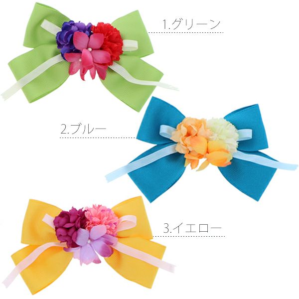 3. 【Prices down2】リボンとお花 髪飾り「グリーン、ブルー、イエロー、スカイ、ピンク」浴衣髪飾り お花髪飾り 浴衣クリップ リボン髪飾り 【メール便不可】ss2512wkk50