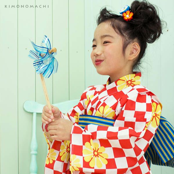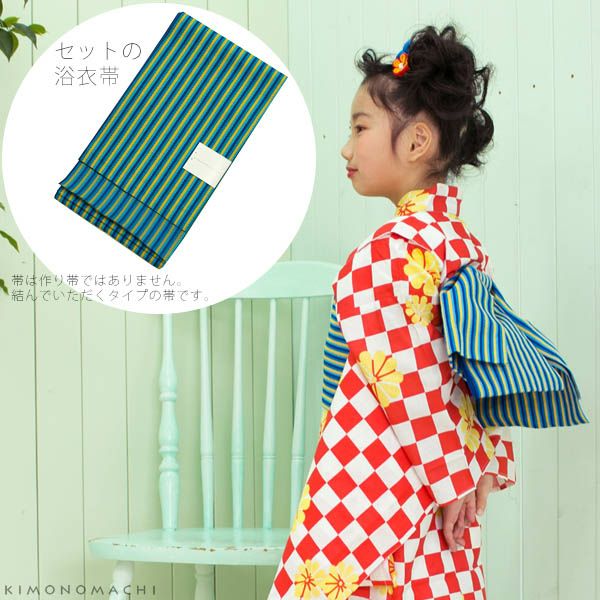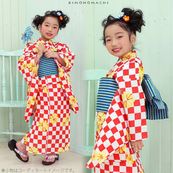 浴衣セット レトロモダン kimonomachi オリジナル 子供浴衣セット ゆかた こども浴衣セット「赤色市松」110、120、130、140、150 ゆかた 子ども浴衣セット レトロモダン 子供浴衣セット 【メール便不可】ss2206ykl10