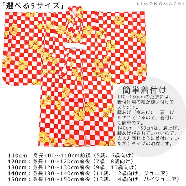 110cm:身丈約105cm/裄丈約50cm/袖丈約50cm/適応身長100~110cm前後(5歳、6歳向け)