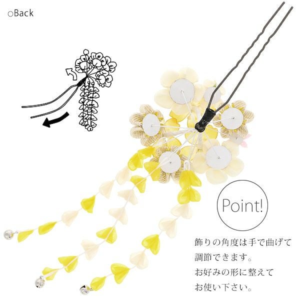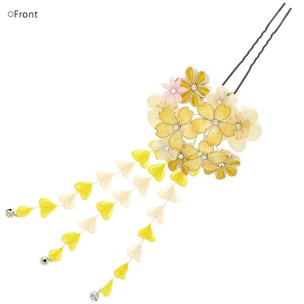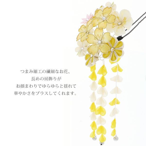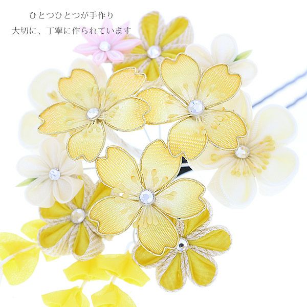 (卒業式駆け込みSALE3/19迄)【Prices down2】振袖髪飾り単品「イエロー 桜とつまみのお花」つまみ細工かんざし 振袖髪飾り 髪飾り 十三詣り、卒業式の袴にも 簪 (No.1125)【メール便不可】<H>ss2512wkk35
