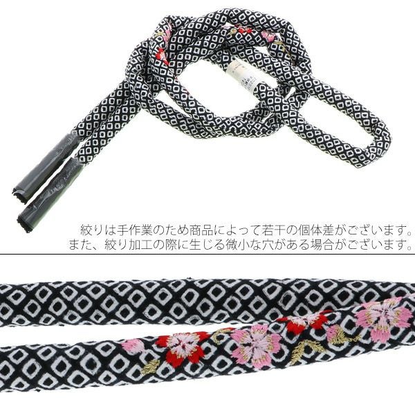 七五三、桃の節句、お正月に 総絞り正絹帯締め 【Prices down2】丸ぐけ帯締め「黒色 桜の刺繍」七五三に 刺繍帯締め 七五三小物 正絹絞り 正絹帯締め 【メール便対応可】ss2603wkm10