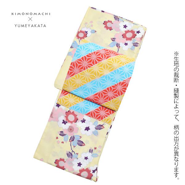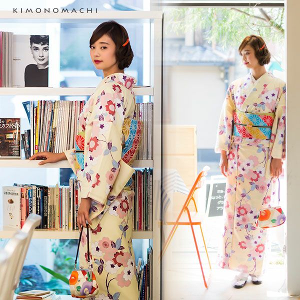 【Prices down】京袋帯、袷着物セット「薄クリーム 桜」L、TL、2L 洗える着物 ポリエステル着物 着物2点セット kimonomachiオリジナル 【メール便不可】ss2212kck10