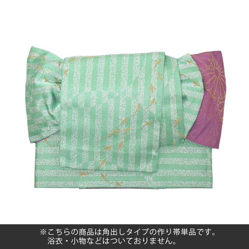 5. 【Prices down2】角出し風タイプ 結び帯単品「水面(みなも) 浅緑」京都きもの町オリジナル 浴衣帯 作り帯 付け帯 【メール便不可】ss2512oyk15