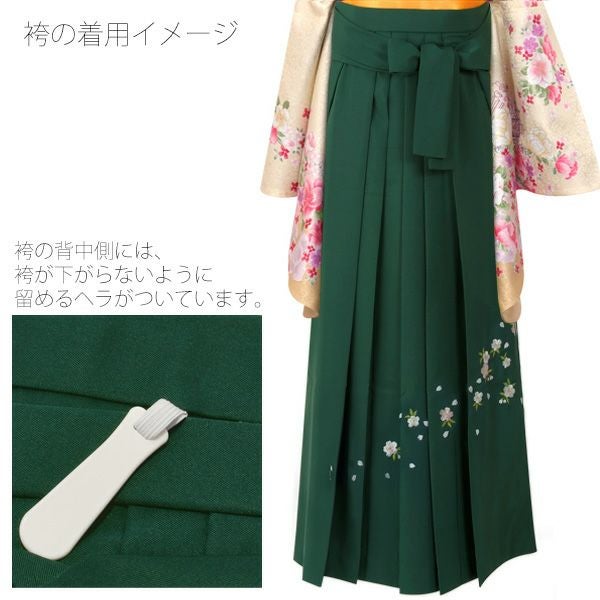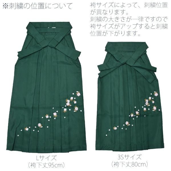 (卒業式駆け込みSALE3/19迄)無地袴単品「緑色 桜の刺繍」4S、3S、2S、S、M、L、2L 袴 ジュニア袴 刺繍袴 卒業式、修了式に はいからさんスタイル 先生袴 【メール便不可】ss2112hkm20ss2206hkm20