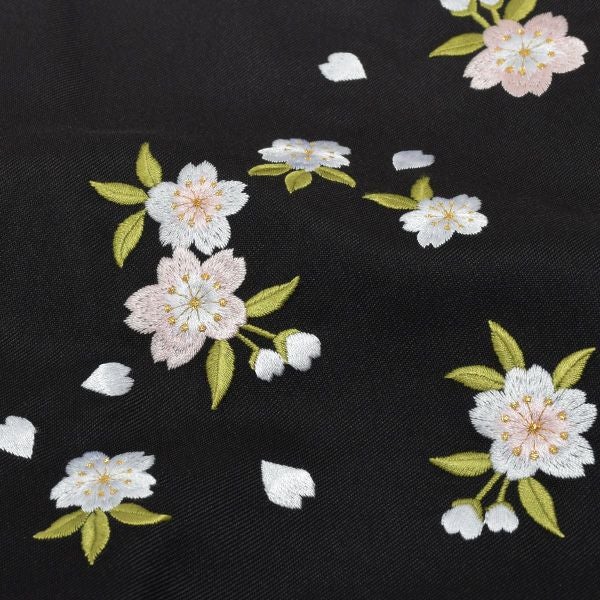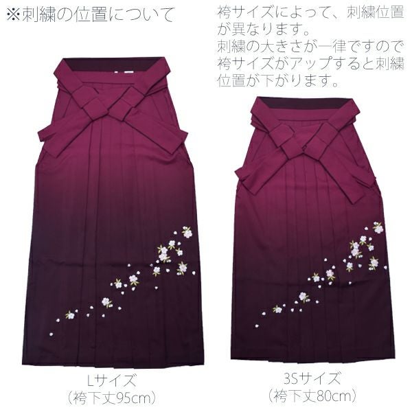 (卒業式駆け込みSALE3/19迄)グラデーション袴単品「黒色ぼかし 桜の刺繍」3S、2S、S、M、L、2L 袴 ジュニア袴 刺繍袴 卒業式、修了式に はいからさんスタイル 先生袴 【メール便不可】