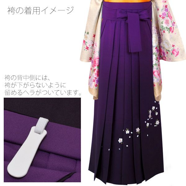 (卒業式駆け込みSALE3/19迄)グラデーション袴単品「紫色ぼかし 桜の刺繍」3S、2S、S、M、L、2L 袴 ジュニア袴 刺繍袴 卒業式、修了式に はいからさんスタイル 先生袴 【メール便不可】