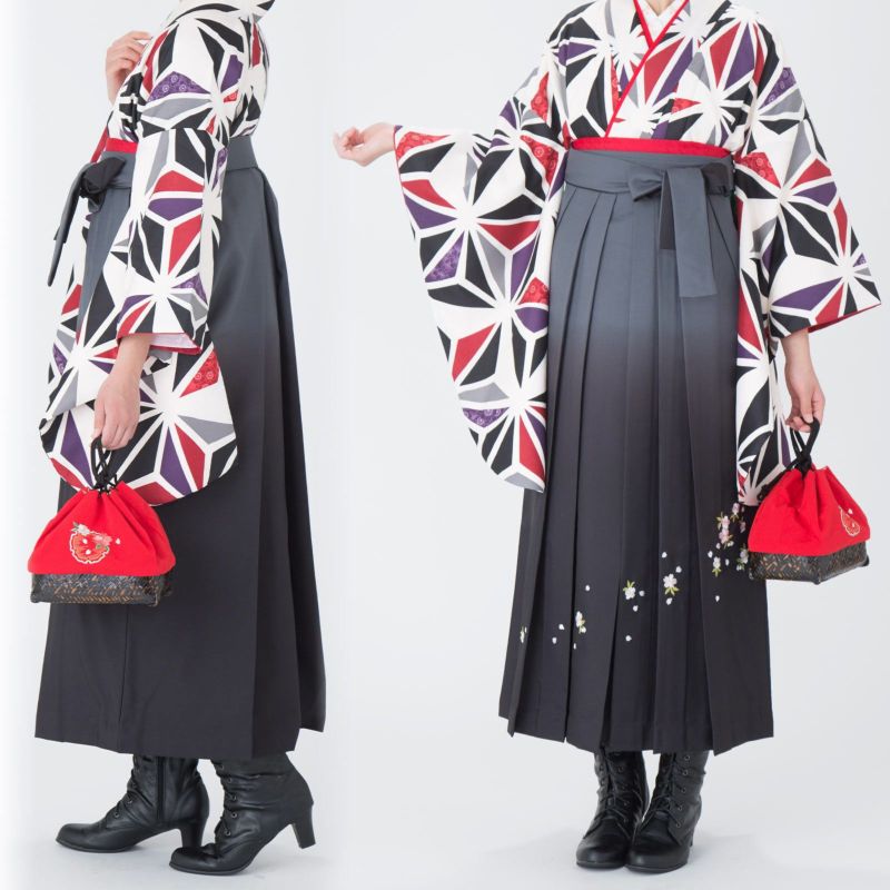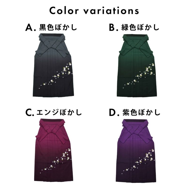 (卒業式応援75%SALE 2/19迄)【卒業式 袴 単品】グラデーション 桜の刺繍 黒 緑 エンジ 紫 4サイズ:S、M、L、LL(2L) 卒業式 修了式 先生 教員 レディース 女の子 行灯 ヘラ付き 小学校 大きいサイズ 小さいサイズ ブラック パープル グリーン【メール便不可】