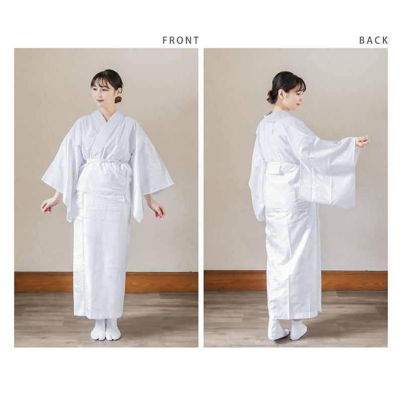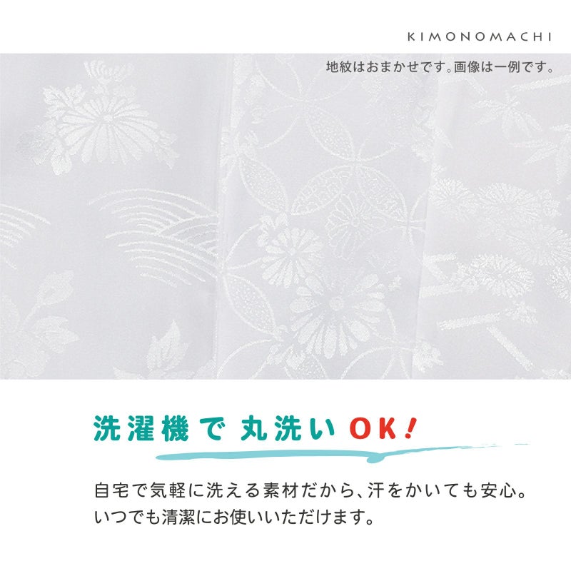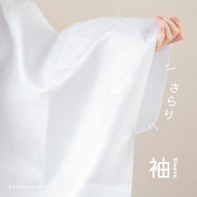 【カラー】袖とスカート部分は、ポリエステルの柔らかな光沢の白色。身頃、腰布は、白色。半衿は、柔らかな白色。