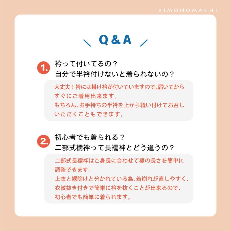 縫い付け済みの衣紋抜き付きで、簡単に衿が抜けます。初心者の方にもおすすめです。