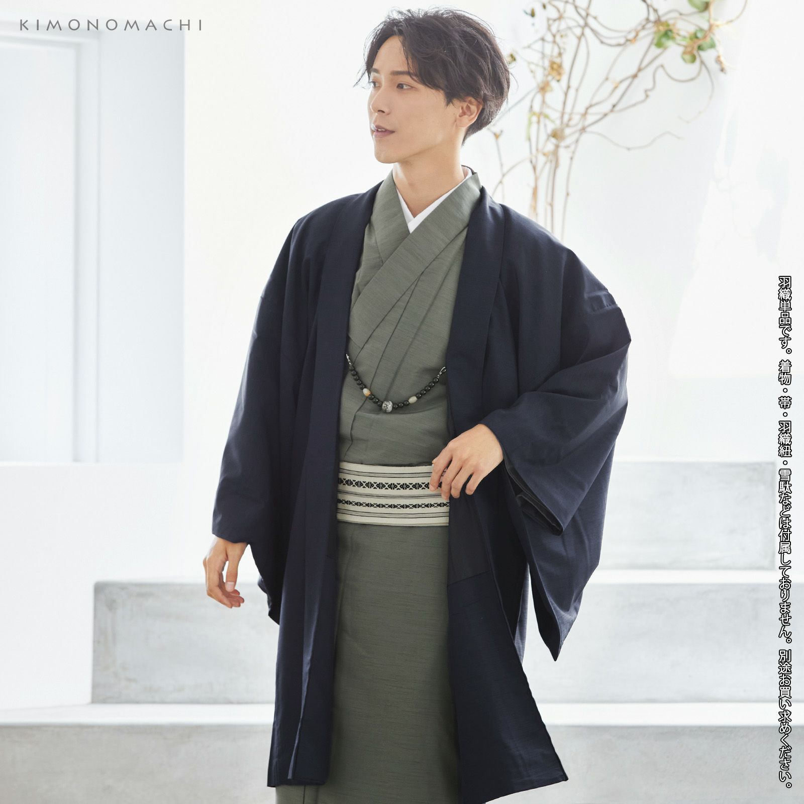 羽織 男性 メンズ 洗える着物 単品 「ネイビー 紬風」 はおり 男着物 男性用着物 男性着物 メンズ着物 お仕立て上がり ポリエステル着物 男羽織 プレタ着物 男着物単品 mens kimono haori 【メール便不可】