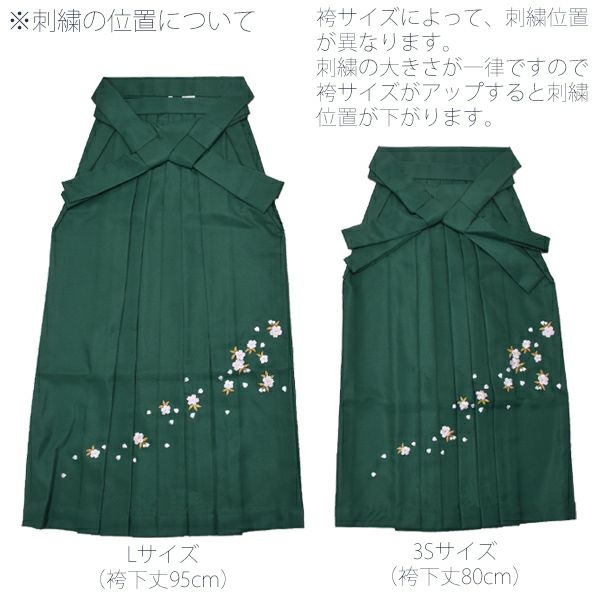 【卒業式 袴 単品】無地 桜の刺繍 袴 単品 黒 緑 エンジ 紫 紺 3サイズ:4S、3S、2S、S 女の子 SSS SS S キッズ 行灯 無地 ヘラ付き 卒業式 小学校 卒園式 ジュニア 小さいサイズ ブラック ネイビー パープル 【メール便不可】