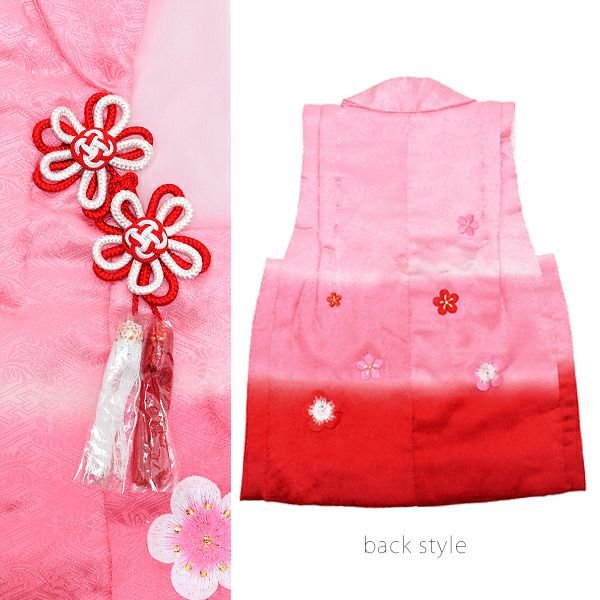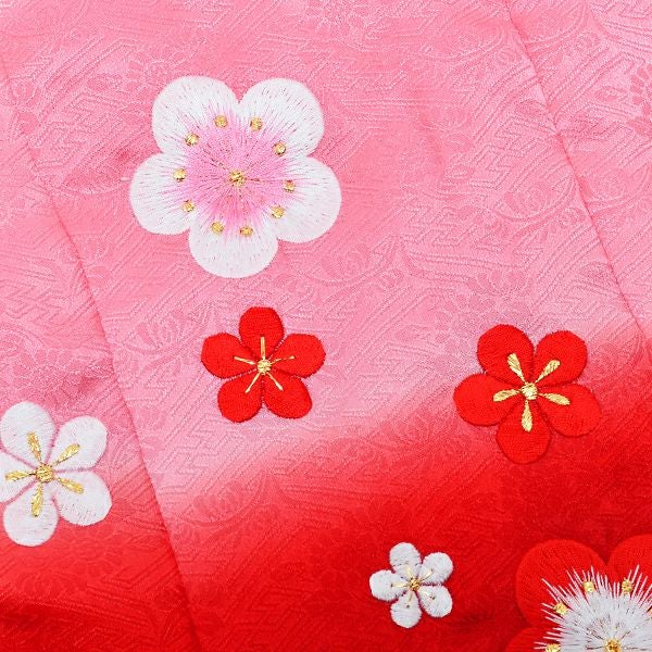 3. 【Prices down2】女の子被布コート単品「ピンク×赤色 段ぼかし 梅のお花刺繍」3歳児用 七五三 七五三小物 刺繍 お子様被布コート 恵【メール便不可】ss2506kkd10