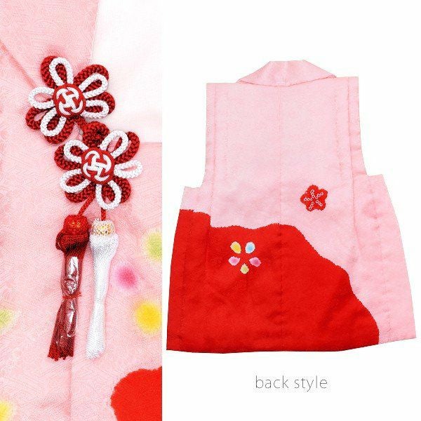 3. 【Prices down2】女の子被布コート単品「ピンク×赤色 絞りのお花」3歳児用 七五三 七五三小物 絞り お子様被布コート 紅花【メール便不可】ss2509kkd25