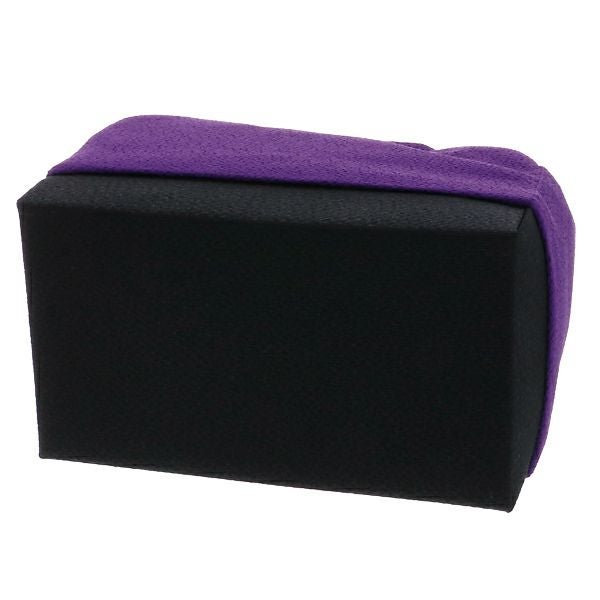 【カラー】巾着は青みの紫色地に椿、まんまるな犬の刺繍。底部分は黒色。草履は台は黒色、鼻緒は水色、グリーン、薄紫色のぼかし。