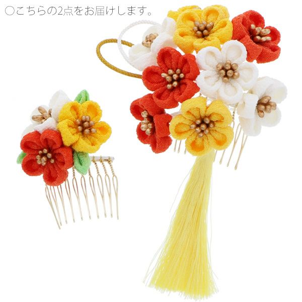 つまみ細工髪飾り2点セット「オレンジ×白×黄色 つまみのお花、房飾り」髪飾り 女の子の髪飾り つまみ細工髪飾り 振袖髪飾り 七五三 No.5647【メール便不可】<H>ss2603wkk10