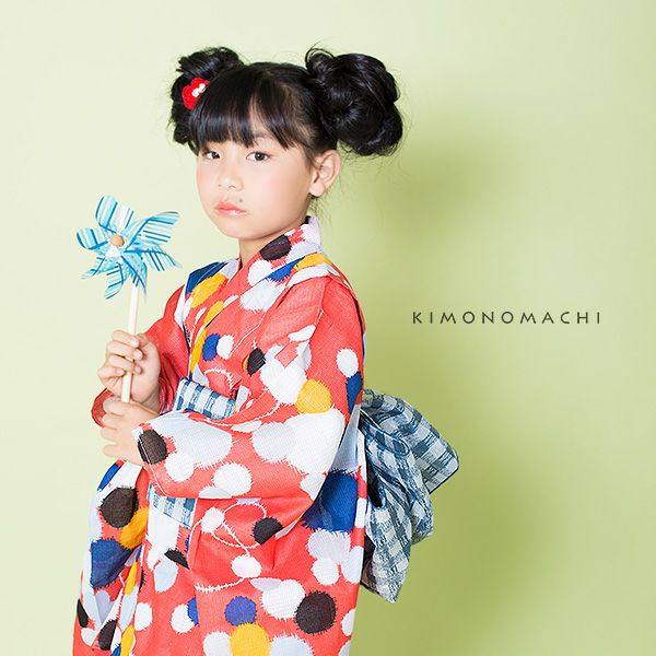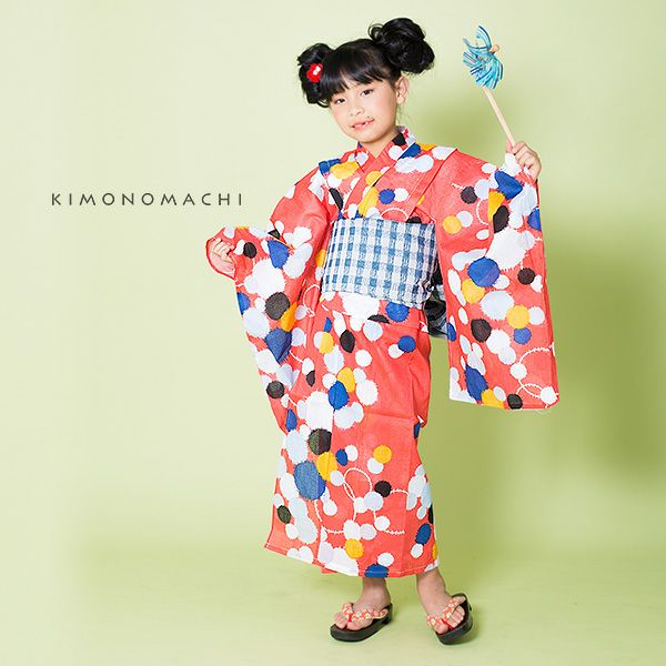 女の子のオシャレで可愛い浴衣セット こども浴衣2点セット「ピンク 水玉」110cm、120cm、130cm、140cm、150cm 女の子浴衣セット 夏祭り、花火大会に レトロ KIMONOMACHI 【メール便不可】ss2206kkd15