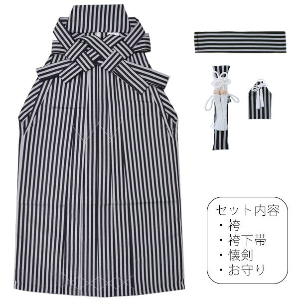 (七五三10%CPOFF10/16迄)男児袴セット「黒グレー 棒縞」3才、5才、7才、ジュニアサイズ 卒園式 こども袴 行灯袴 七五三 【メール便不可】ss2503kkd10