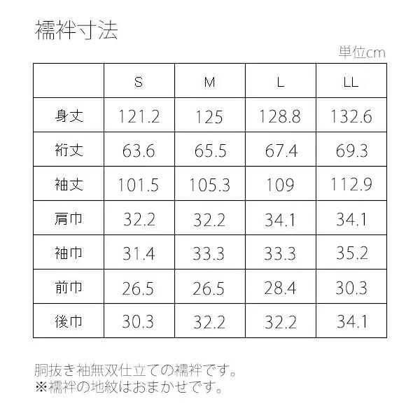 LLサイズ:身丈約132.6cm/裄丈約69.3cm/袖丈約112.9cm
