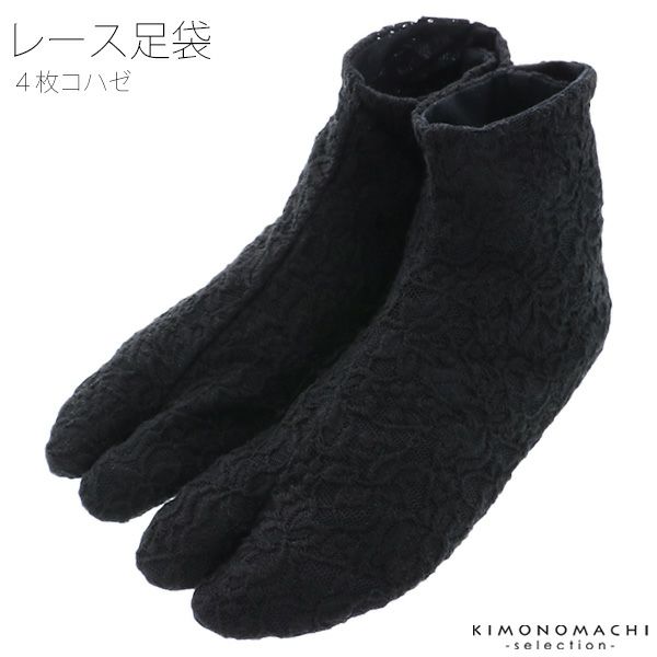 レース足袋 4枚こはぜ 黒 S/M/Lサイズ 日本製 <H>【メール便対応可】