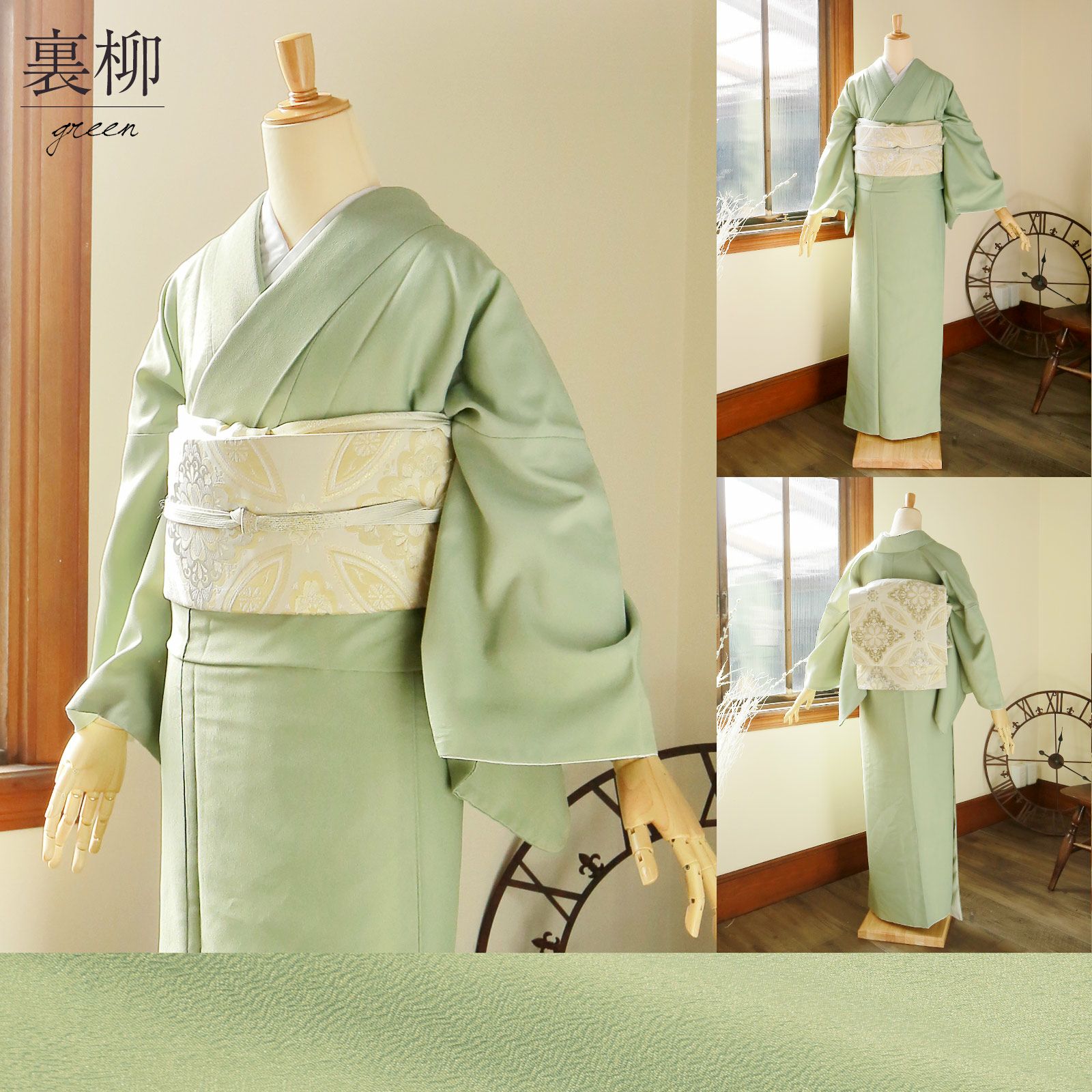 裏柳(うらやなぎ)・柳の葉裏の色のような、淡い黄緑色。グリーン。 |