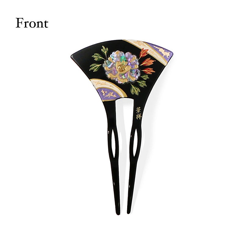 かんざし バチ型 日本製 「黒地 螺鈿 大牡丹 和ピン1484」 銀杏型 高級 簪 礼装用 フォーマル着物 和装 留袖 黒留袖 訪問着 色無地 結婚式 パーティー 【メール便不可】<H>