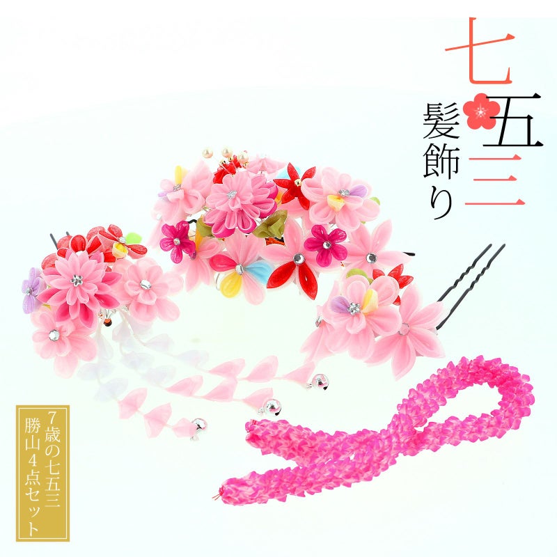 七五三で七才の女の子が日本髪に付ける髪飾り4点セットです。