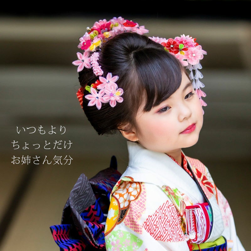 七歳のお子様に限らず、七五三、お正月、桃の節句などの際の振袖、お着物を着る機会に。ぜひ記念に残る髪飾りで可愛らしいお写真を撮ってあげてくださいね♪